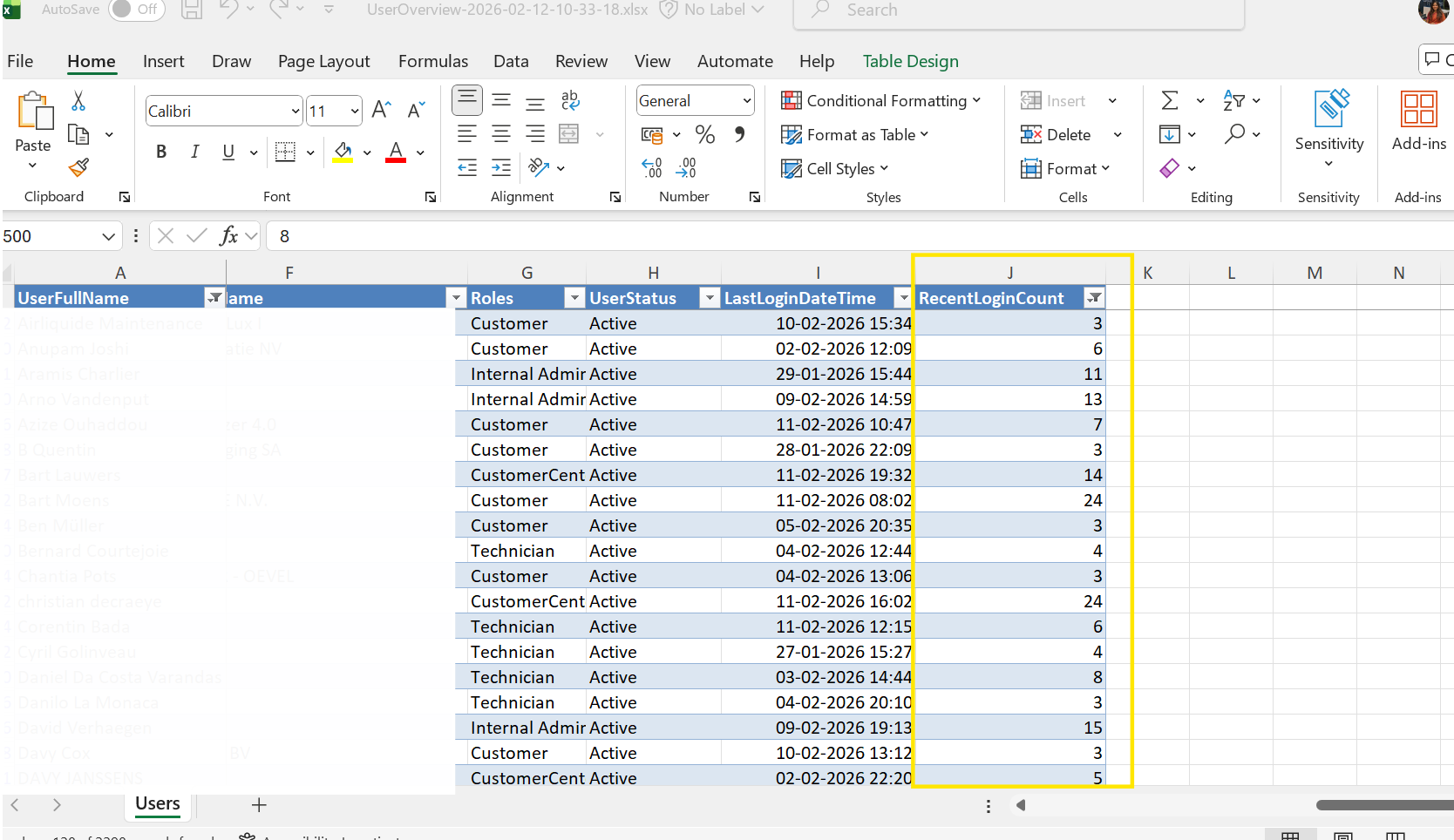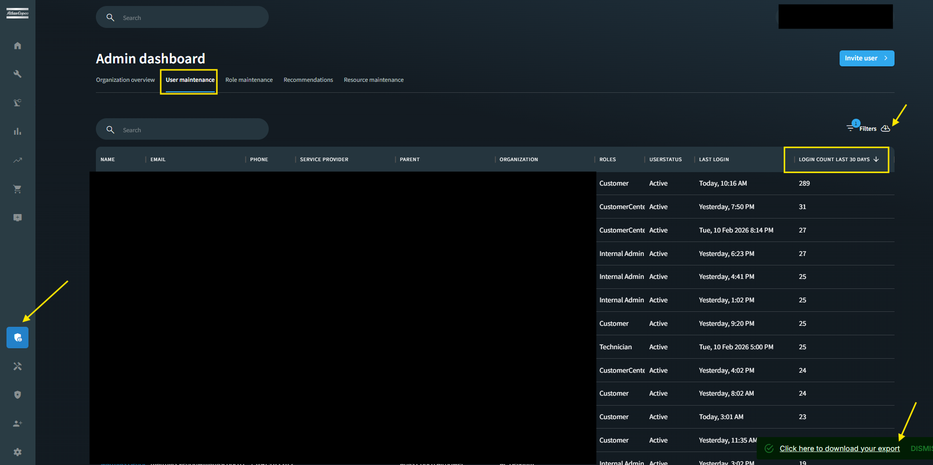 The login count for the last 30 days is now included in the user maintenance export, providing better insights into user activity.