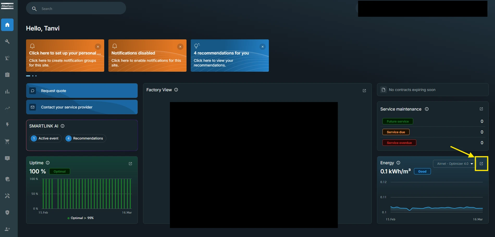 Energy widget now shows the external link button to energy section for sites having Airnet.