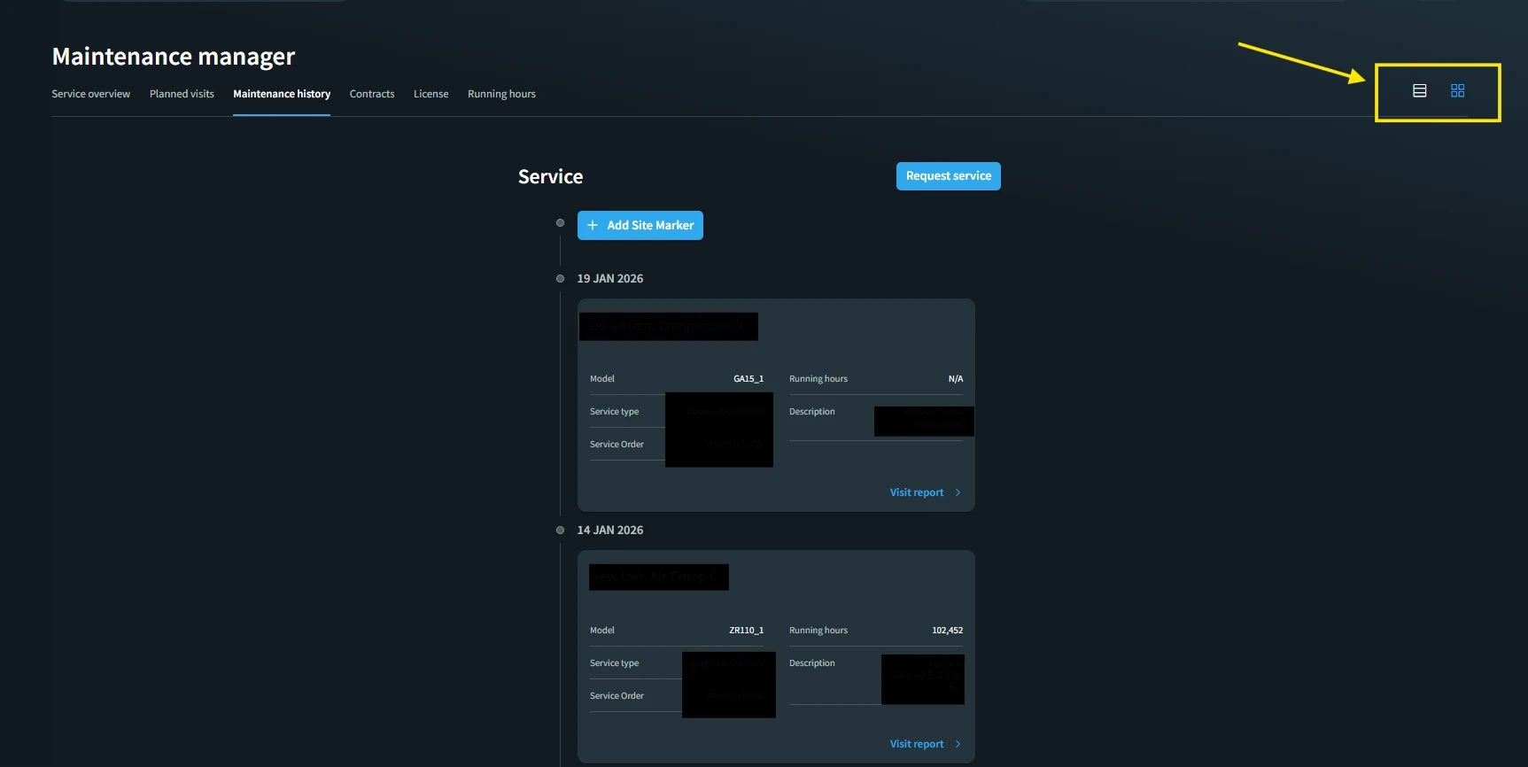 Maintenance History now opens in timeline view by default for easier chronological review. Users can still switch to the table view if desired.