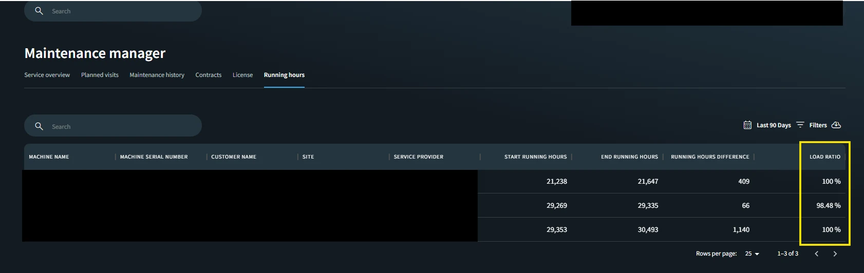 Running hours to Load Ratio sometimes used to be more than 100% when selected date range was less than 30 days. With this version, the load ratio is capped at 100% to avoid confusing values for customers.
